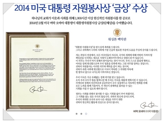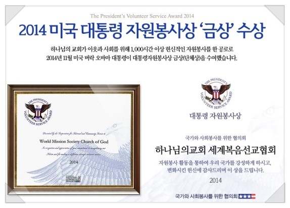 하나님의교회, 미국 대통령 자원봉사상~!